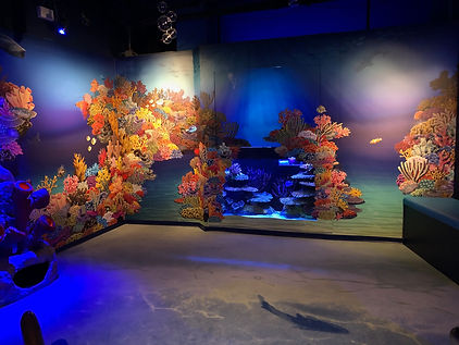 The client wanted four large-scale murals to be placed on the walls of their new child’s play area. The client has specified that one mural needs to resemble a cove environment with a sandy bottom measuring 123.587” x 96”. The second mural needs to resemble a deeper part of the cove and needs a section cut out for a monitor, measuring 187.5” x 96”. The third mural needs to be an Indo-pacific reef with a section cut out for a window of an aquarium measuring 169.5” x 92”. The fourth mural needs to also represent the Indo-pacific reef, only with an enlarged scale to match an interactive coral feeding game, measuring 100” x 92”. The client would like it to appear as realistic as possible while also appealing to the kids. All species depicted need to stylistically resemble the actual animal or plant and be appropriate for the region depicted.